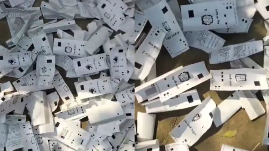 समस्तीपुर जिले के केएसआर कॉलेज के पास सड़क पर बड़ी संख्या में VVPAT स्लिप्स बिखरी हुई मिलीं, जिनके वीडियो सोशल मीडिया पर तेजी से वायरल हो गए।