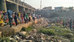 नदियों के प्रदूषित जल में स्नान तो दूर की बात है छींटे लेने से भी मन घबराता है, लेकिन इन लोगों को मजबूरी के चलते इसी पानी में छठ पूजा करनी पड़ रही है.
