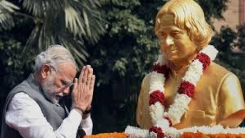 नई दिल्ली. डॉ. एपीजे अब्दुल कलाम की 10वीं पुण्यतिथि पर, प्रधानमंत्री नरेंद्र मोदी ने भारत के पूर्व राष्ट्रपति को भावभीनी श्रद्धांजलि अर्पित की और उन्हें एक प्रेरक दूरदर्शी, असाधारण वैज्ञानिक, मार्गदर्शक और सच्चे देशभक्त के रूप में याद किया।