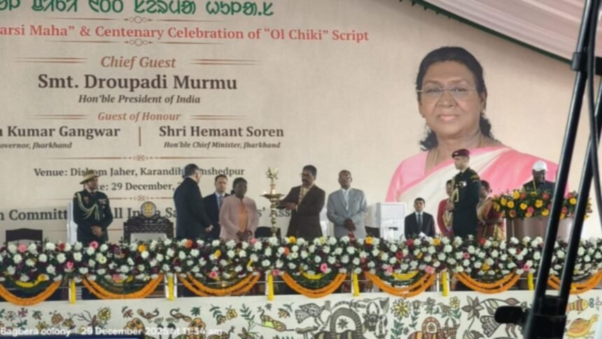 राष्ट्रपति ने कहा कि ओलचिकी लिपि के शताब्दी समारोह का आयोजन Pandit Raghunath Murmu के अथक प्रयासों का ही परिणाम है। उन्होंने ओलचिकी लिपि में लेखन करने वाले लेखकों को भी सम्मानित किया।